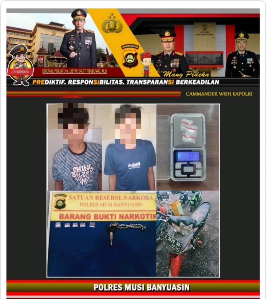 Kapolres Muba Akbp Erlin Tangjaya, SH, SIK melalui Kapolsek Batang Hari Leko Iptu Rusli, SH, MH kepada awak media, Kamis (17/06/2021) mengatakan. Dua pelaku yang berhasil kita tangkap berinisial NN (16) Dan ZK (14). Kedua pelaku merupakan pengedar narkoba jenis sabu.