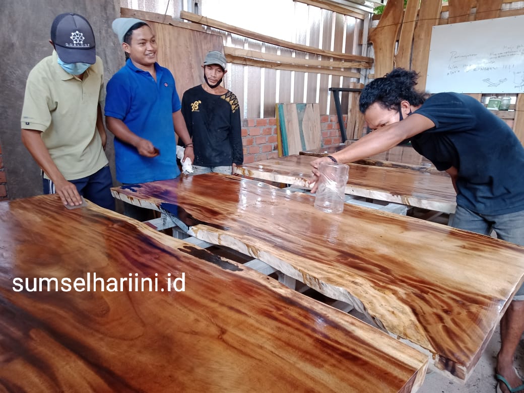 “Meja ini pesanan pak Camat Lawang Kidul, dan juga pesanan pak bupati. Sebelumnya kami menyelesaikan pesanan pak GM dan pejabat PTBA,”ungkap Tono.