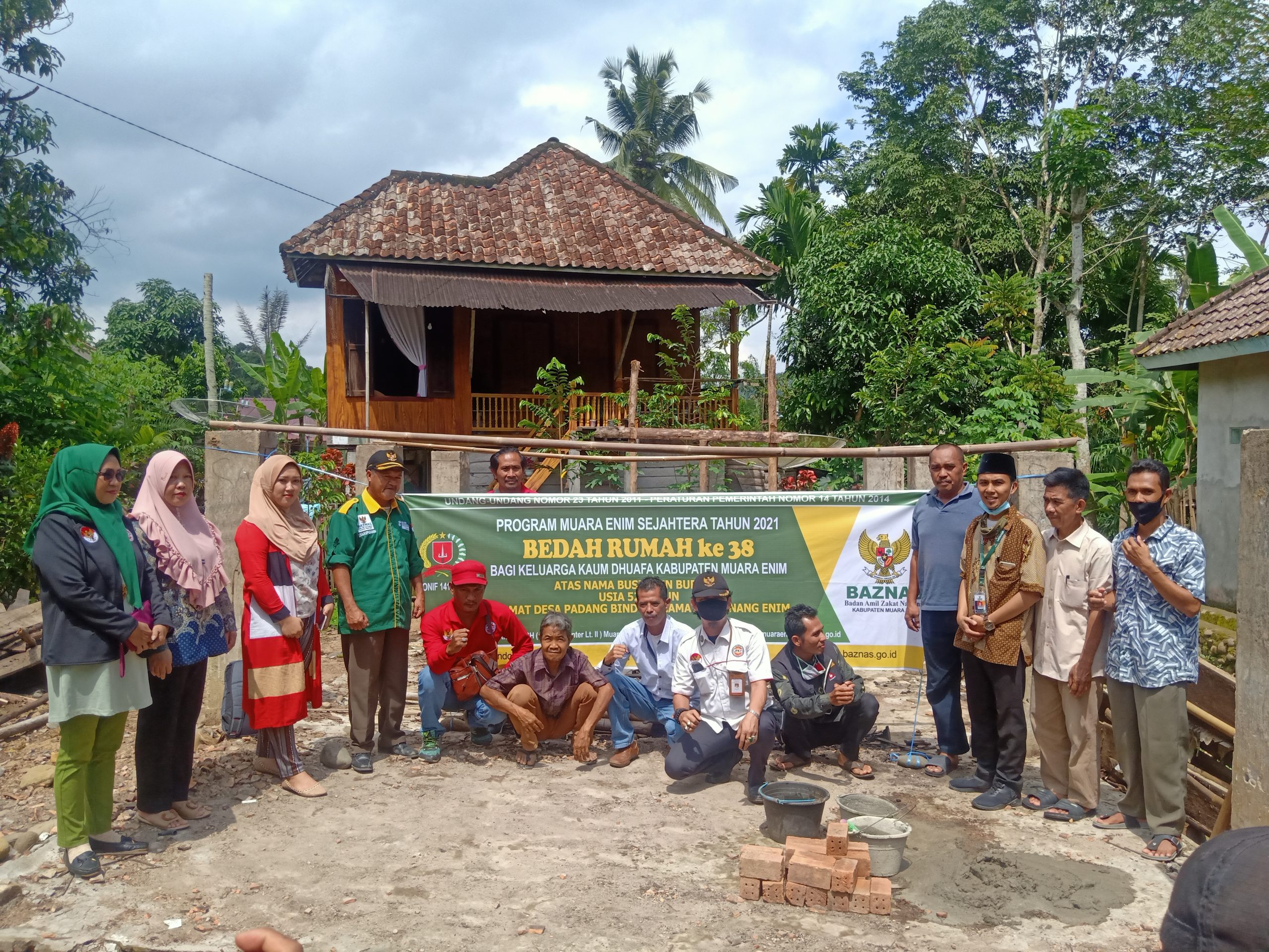 SHI.ID| MURA ENIM – Jaringan Pendamping Kebijakan Pembangunan (JPKP) Kabupaten Muara Enim mendampingi Badan Amil Zakat Nasional (BAZNAS) Kabupaten Muara Enim meletakan batu pertama rumah Busri.