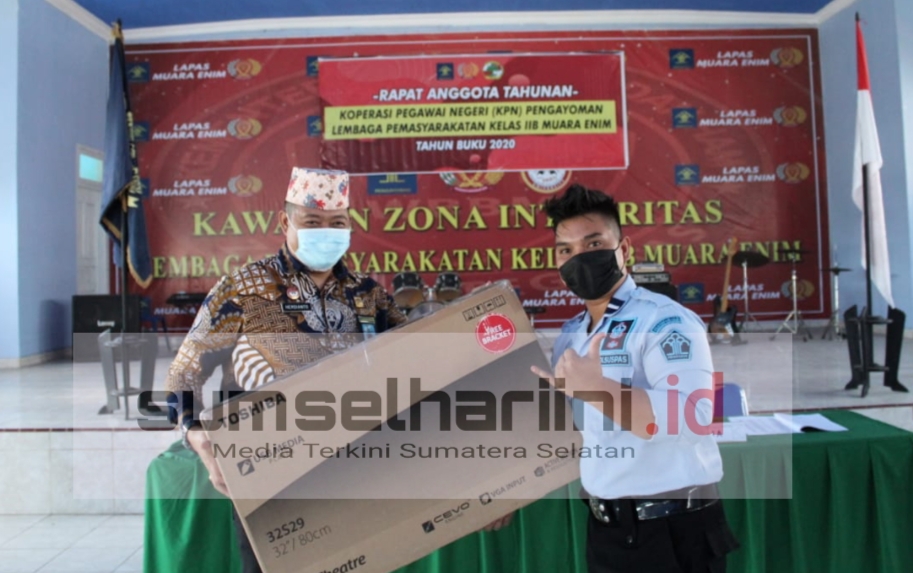 SHI.ID| MUARA ENIM – Koperasi Pemgayom Lembaga Pemasyarakatan (Lapas) Kelas II B Muara Enim menggelar kegiatan Rapat Anggota Tahunan (RAT) yang dihelat di Aula Lapas Kelas II B Muara Enim, pada Jumat (23/4/2021). Kegiatan ini berjalan dengan lancar dan tetap mematuhi protokol kesehatan.