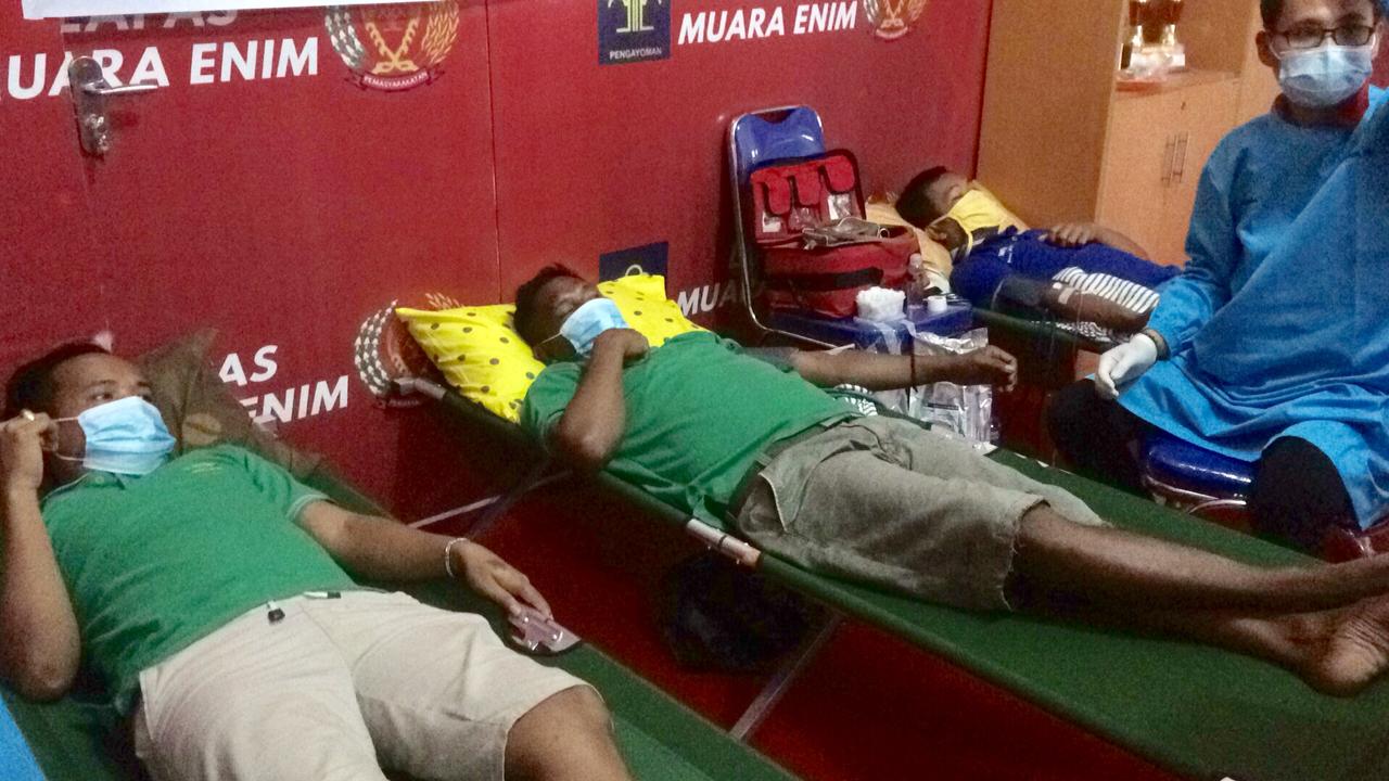 SHI.ID|MUARA ENIM – Sebanyak kurang lebih 80 kantong darah dari seluruh pegawai di lingkungan Lapas Muara Enim diserahkan ke Palang Merah Indonesia (PMI) Muara Enim. Puluhan kantong ini didapat dari hasil donor yang dilakukan Lapas yang bekerja sama dengan PMI.