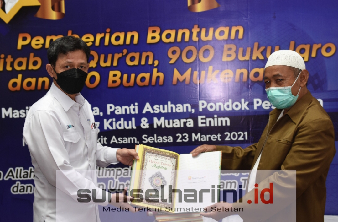SHI.ID|MUARA ENIM – Sebagai wujud syukur atas keberkahan dan keselamatan PT Bukit Asam Tbk (PTBA) memberikan bantuan 907 kitab Al-Qur’an, 900 Buku Iqro dan 450 Mukena dalam acara bertajuk “Tanjung Enim Berzikir”, yang dihelat di Masjid Jami Bukit Asam Tanjung Enim, Selasa (23/3/2021).