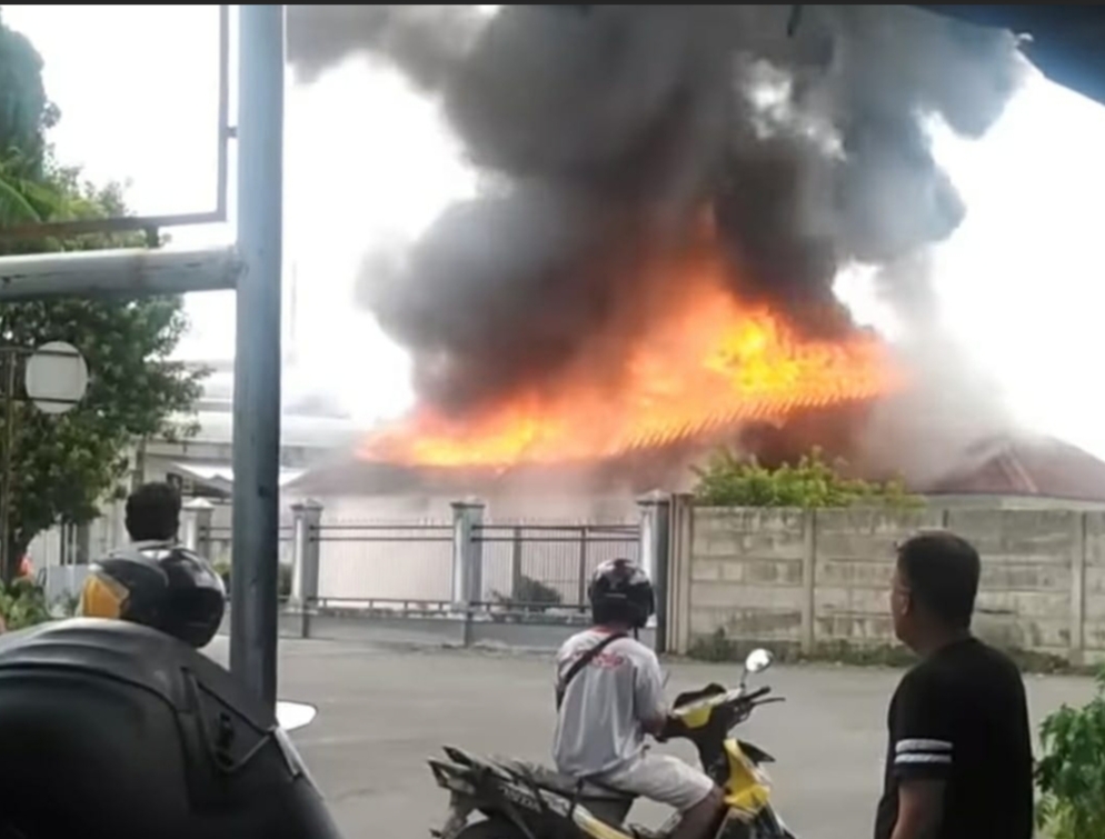 Kebakaran ini juga beredar di media sosial dan tampak api membumbung tinggi di atap bangunan. Pegawai dan petugas berupaya mengeluarkan barang yang bisa dikeluarkan. Ruangan yang terbakar diketahui terdapat barang dan berkas.